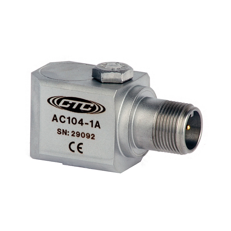 CTC公司的AC104係列工業振動加速度傳感器,是CTC公司最常用的一款側端出線的傳感器,其靈敏度為100mV/g,量程50g,敏感元件為壓電剪切型結構。外殼材質為316不鏽鋼,采用激光焊接密封,防護等級高達IP68,防水、防油、防塵設計,可於各種惡劣工業現場環境下長期穩定地工作。