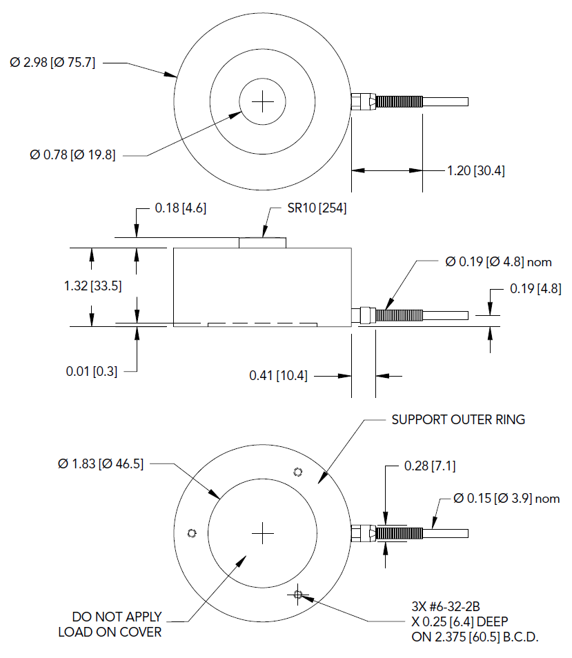 LLB550是一款大量程按鈕式測力傳感器,底部設有安裝螺紋孔。它設計用於壓力機或軸向壓力測試的應用場合。標準型號的LLB550大量程測力傳感器的材質為17-4不鏽鋼,產品堅固耐用,它的外徑為76.2mm。電纜為3米長的24 AWG 4芯特氟龍屏蔽電纜。你也可以根據你的要求選擇相應的傳感器信號輸出接口。